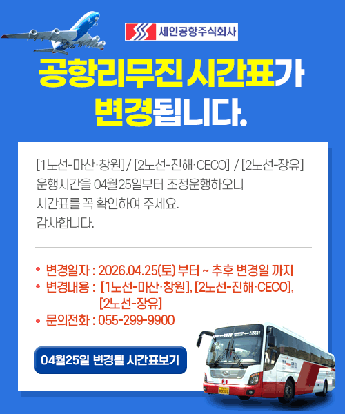 - 다음글공항버스 시간표 변경 공지(2025년 12월 20일부터~) 25.12.15